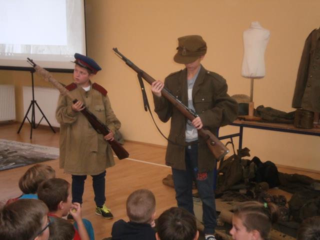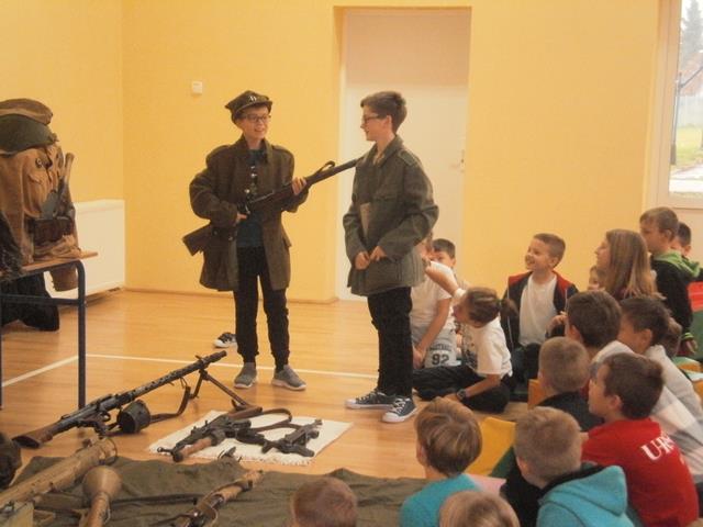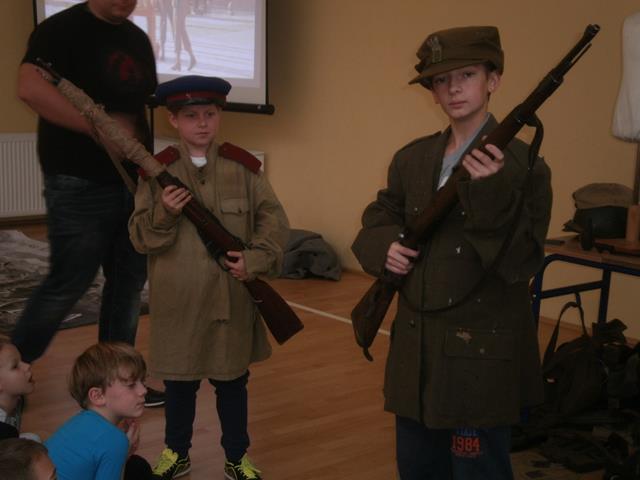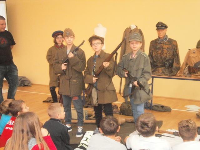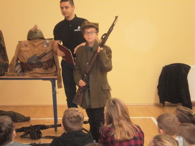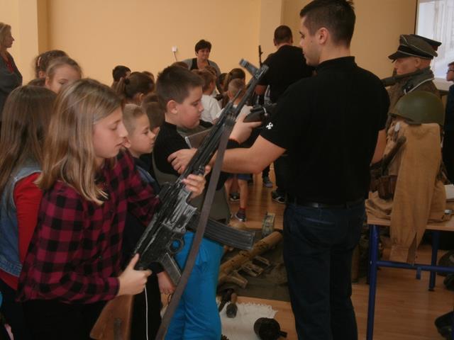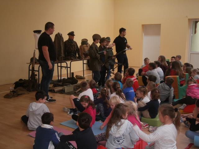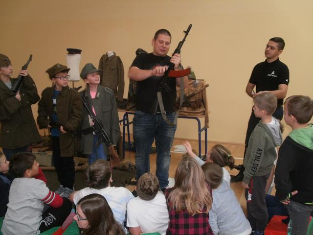 Żywe lekcje historii to jeden z ważniejszych elementów wychowania patriotycznego. Edukacja przez doświadczenie i przeżycie, powoduje że łatwiej przyswajamy wiedzę, więcej zapamiętujemy jak również lepiej rozwija naszą wyobraźnię. Już od ponad 20 lat w naszym kraju tworzone są przez pasjonatów historii grupy rekonstrukcyjne, które kultywują tradycje oręża polskiego. W przeddzień Narodowego Święta Niepodległości w SP Trześń gościliśmy przedstawicieli grupy rekonstrukcyjnej OTHALA z Rzeszowa. Nazwa OTHALA pochodzi ze skrótu runicznego i oznacza w wolnym tłumaczeniu „przywiązanie do ojczyzny”. Przedstawiciele grupy rekonstrukcyjnej przedstawili skrótowo walki Polaków w 1939 roku przeciwko Niemcom i Rosjanom poparte prezentacją umundurowania i uzbrojenia z epoki. Przypomniano walki w z okresu powstania warszawskiego a także walki powojenne prowadzone przez „Żołnierzy Wyklętych”. Po zakończeniu części teoretycznej, nastąpił czas w którym każdy z uczniów mógł osobiście wziąć wierne repliki broni do ręki i poczuć się jak prawdziwy Żołnierz Rzeczypospolitej.