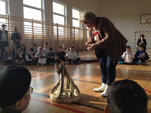 10.11.2016r. uczniowie klas 0-VI Szkoły Podstawowej w Siedlance uczestniczyli w uroczystym apelu z okazji rocznicy Odzyskania Niepodległości przygotowanym przez harcerzy z 15 Drużyny Harcerskiej z Siedlanki. Wszyscy usiedli przy ognisku, które uroczyście rozpaliła Pani Dyrektor Krystyna Piątkowska. Gawęda harcerska przybliżyła uczniom okoliczności utraty niepodległości, wydarzeń z okresu zaborów, a następnie odzyskania niepodległości w dniu 11 listopada 1918 roku.