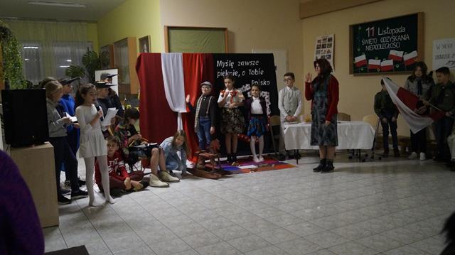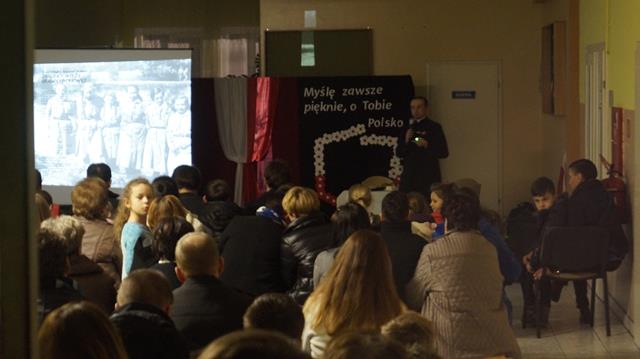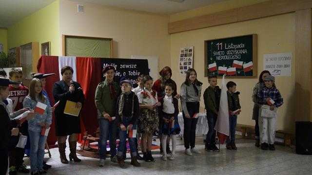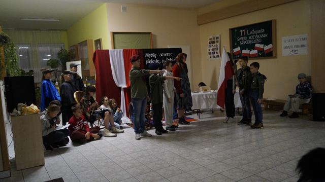 Wieczornica z okazji Święta Odzyskania Niepodległości, organizowana przez harcerzy z 8 DH „Złote Pióra” działającej w Szkole Podstawowej w Niwiskach, powoli staje się dla społeczności Niwisk tradycją. W tym roku harcerze oraz Dyrektor szkoły, P. Ewa Haracz, już po raz czwarty, zaprosili rodziców, uczniów i wszystkich zainteresowanych do wspólnego świętowania jednego z naszych najważniejszych świąt narodowych. W tym roku Wieczornica odbyła się 10 listopada – obchody rozpoczęto o godz. 18.00 uroczystym wciągnięciem narodowej flagi na maszt ustawiony przed budynkiem szkoły. W budynku szkoły harcerze przedstawili zebranym krótką inscenizację patriotyczną, a następnie gość specjalny, ks. Antoni Więch wygłosił prelekcję poświęconą dzieciom i młodym ludziom walczącym o niepodległość naszej Ojczyzny. Po części oficjalnej zebrani zostali zaproszeni do wspólnego śpiewania pieśni patriotycznych, a następnie na mały poczęstunek. Uroczystość zaszczycili swoją obecnością goście w osobach: Wójta i Sekretarza Gminy, dyrektora GOKiB, księży parafii Niwiska.
