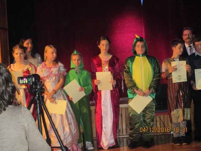Na teatralnej scenie XV Przeglądu Teatrów zaprezentowała się również grupa uczniów kl.VI ,,Siedlaczki”. Przedstawiła ona sztukę ,,O mądrej królewnie i smoku z Twardej Góry”. Młodzi artyści z wielkim zaangażowaniem odegrali baśniowe postaci m. in. rezolutnej Eleonory, dobrodusznego Smoka , przezornej Czarownicy, czy butnego Rycerza. Historia perypetii królewny poszukującej właściwego kandydata na męża spodobała się publiczności, która nagrodziła występ gromkimi brawami.