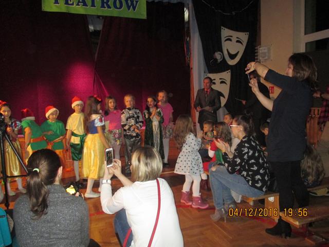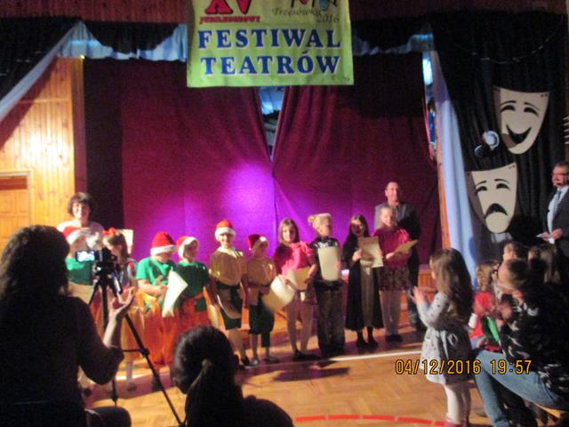 4 grudnia w niedzielne popołudnie uczniowie z kółka teatralnego „Fiku – Miku” Szkoły Podstawowej w Siedlance, już kolejny raz wzięły udział w Festiwalu Teatrów w Trzęsówce. Grupa Krasnoludków opanowała scenę wystawiając inscenizację pt. „Śnieżka”. Emocje sięgnęły zenitu, kiedy na scenę widowiskową wszedł Święty Mikołaj z workiem słodyczy dla dzieci. Nasze krasnale wyglądały jak Elfy Mikołaja. Prezentowały się pięknie w kolorowych strojach i mikołajowych czapkach.