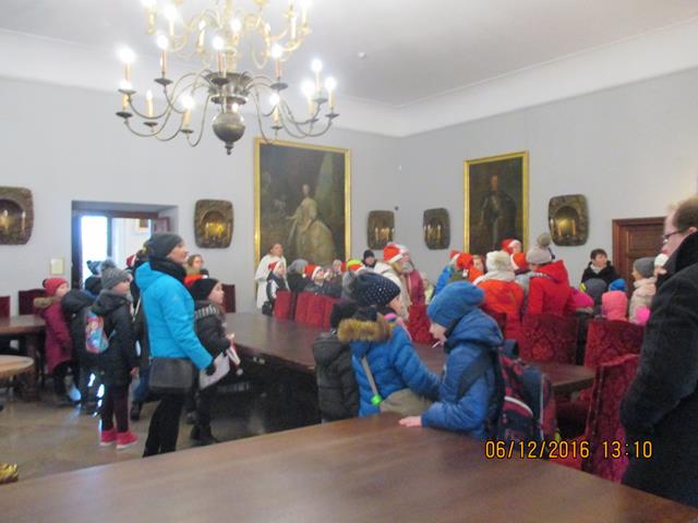 Podczas tej wizyty dzieci otrzymały prezenty od Mikołaja, zwiedziły zamek oraz zbrojownie rycerską. Wybrały się również na teren parku, który znajduje się wokół zamku. W ramach pobytu odbyły się warsztaty kulinarne – ozdabianie ciasteczek, które następnie zostały skonsumowane przez dzieci. Natomiast dzieci z klas 4-6 uczestniczyły w zajęciach na polu golfowym. Były wspólne śpiewy i zabawy z Mikołajem i ,,Śnieżynkami.” Ten dzień zostanie wszystkim uczestnikom na długo w pamięci. Była to wielka atrakcja mikołajkowa.