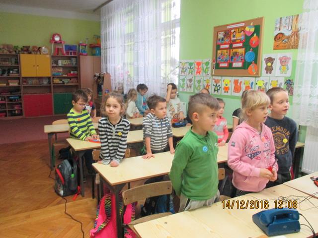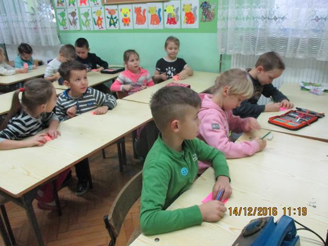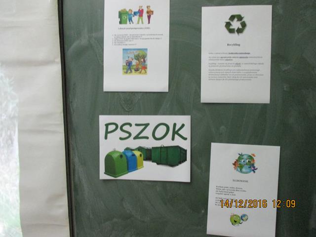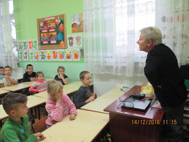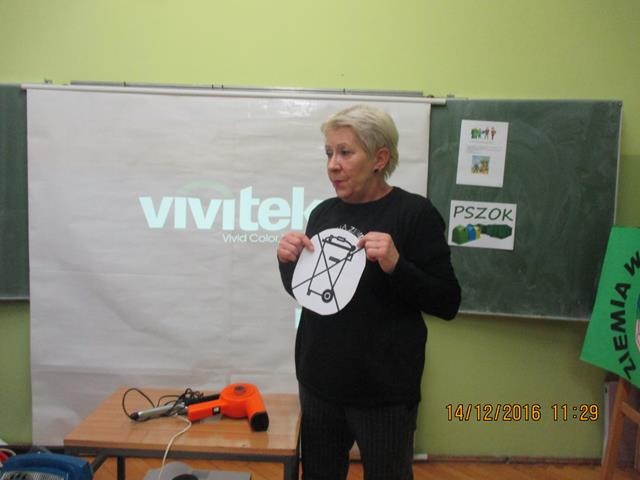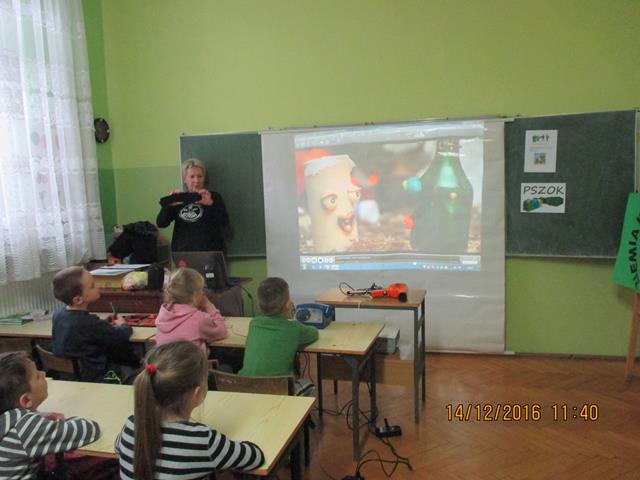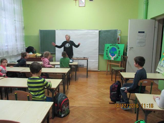 W dniu 14 grudnia 2016 roku przyjechała Pani prelegent z ,,Fundacji Czysta Ziemia”, która propaguje jak eliminować ,,elektrośmiecie” z otoczenia. W klasach 0-1 zostały przeprowadzone warsztaty ekologiczne pt. ,,Dzieci i elektrośmieci.” W ramach spotkania dzieci obejrzały film edukacyjny na wyżej wymieniony temat. Po projekcji odbyła się pogadanka co zagraża przyrodzie oraz również zabawy dydaktyczne w następujących formach: rysowanie elektrośmieci, rebusy obrazkowe, kolorowanki. Zapoznały się z 5 zasadami postępowania ZSEE tzn. Zbieraj Segreguj Edukuj Eliminuj. Na końcu spotkania dzieci nauczyły się wierszyka, który mówi o tym, że każdy z nas powinien dbać o przyrodę.