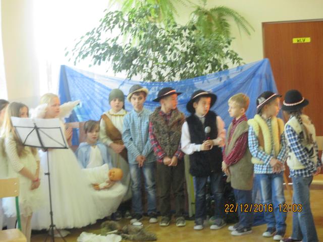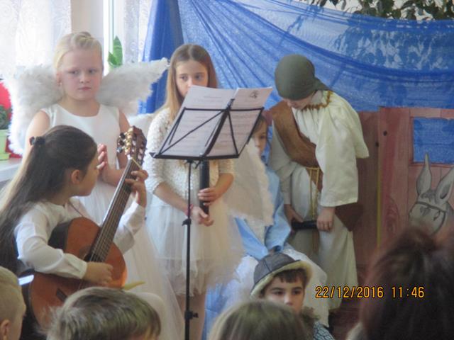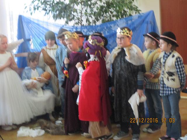 22 grudnia2016r w świątecznej atmosferze w Szkole Podstawowej w Sielance, odbyło się tradycyjne spotkanie wigilijno-opłatkowe. Tym miłym akcentem uczniowie wprowadzili społeczność szkolną w okres najpiękniejszych Świąt Bożego Narodzenia. W części artystycznej uczniowie klas I-II, zaprezentowały tradycyjne jasełka. Aktorzy przypomnieli wszystkim sceny rozgrywające się w Betlejem. Stroje, świetna gra małych aktorów oraz występy dzieci szkoły muzycznej zrobiły duże wrażenie. Po części artystycznej, wspólnym kolędowaniu podzielono się opłatkiem. Były to chwile pełne magii i uroku po których w doskonałych nastrojach rozeszliśmy się do domów na przerwę świąteczną.