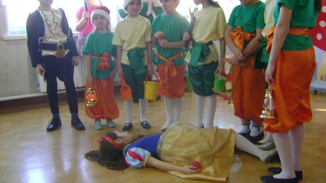 Umiejętność bycia widzem i aktorem dziecko nabywa poprzez szereg oddziaływań, między innymi oglądając różne teatrzyki, inscenizacje. W rolę aktorów wcieliły się dzieci z kółka teatralnego „ Fiku – Miku” ze Szkoły Podstawowej w Siedlance. Zaprezentowały inscenizację pt. „Śnieżka” dla społeczności szkolnej jak również Punktu Przedszkolnego Wesoły Promyk. Widzowie żywo reagowali na to dzieje się na scenie. Głęboko przeżywali losy bohaterów, tym bardziej, że mali aktorzy swoim zaangażowaniem potrafili zachwycić widza .Przedstawienie bardzo się podobało, świadczyły o tym głośne brawa. Ta piękna wzruszająca historia z pewnością pobudziła dziecięcą wyobraźnię. Po spektaklu „ mali widzowie” spotkali się z aktorami. Mogli z bliska obejrzeć ich piękne stroje o które zadbała prowadząca Wiesława Mazur.