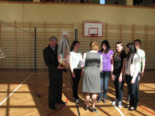 Po meczu finałowym mogliśmy zobaczyć pokazowy mecz pomiędzy dziewczętami z gimnazjum a zwycięską drużyną – po wyrównanej i zaciętej walce zwyciężyła drużyna dziewcząt z gimnazjum - przygotowana przez Panią Agnieszkę Wilk-Sybicką. W ostatnim meczu turnieju gimnazjalistki zaprezentowały swoje umiejętności siatkarskie.