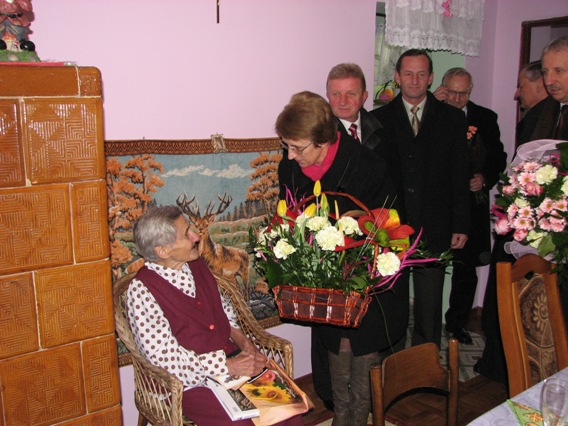 Z okazji setnych urodzin panią Marię odwiedzili ks. Proboszcz i ks. Prałat Parafii p. w. św. Mikołaja w Niwiskach, Kierownik KRUS, przedstawiciele władz samorządowych. Były oczywiście prezenty, kwiaty i życzenia. Tym razem stulatce życzono 200 lat życia!