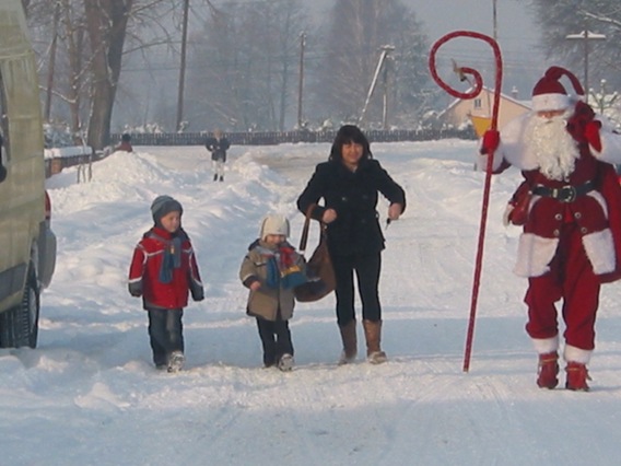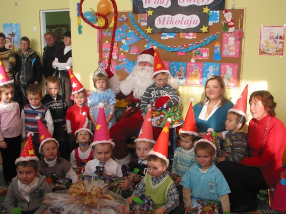 Dnia 4 grudnia 2010 roku o godzinie 10.00 przybył do nas św. Mikołaj z wielkim workiem zabawek i słodyczy w towarzystwie dwóch małych i dzielnych aniołków. Dzieci też przygotowały prezenty dla naszego gościa i pięknie wyrecytowały wiersze i zaśpiewały piosenki. Święty Mikołaj obdarował wszystkich: od najmłodszych do najstarszych, a także nie zapomniał o pani Wójt i pani Dyrektor.