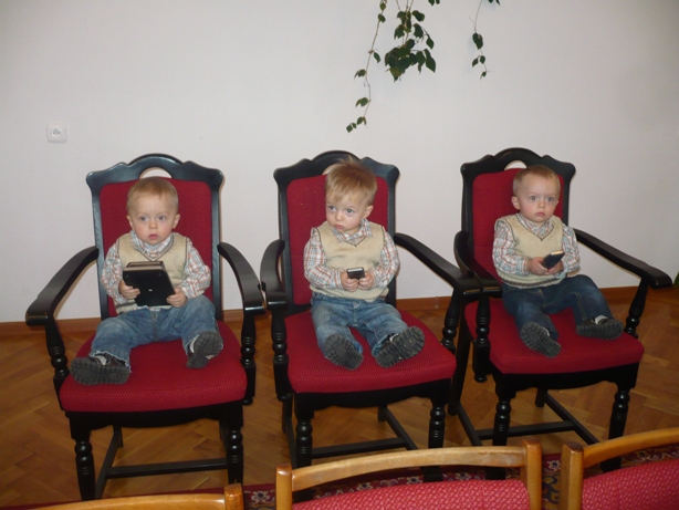 Marceli, Ignacy i Cezary Zielińscy już po raz drugi przybyli z wizytą do Urzędu Gminy w Niwiskach. Mają już 16 miesięcy i rosną jak na "drożdżach". Rodzicom życzymy jak najmniej kłopotów ze swoimi pociechami.