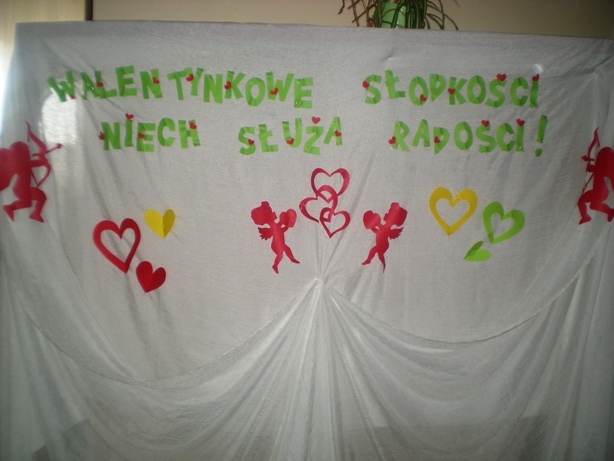 Atmosferę walentynkową uświetnił Samorząd szkolny, który przygotował wystrój korytarza, pocztę walentynkową i wiele innych zabaw.