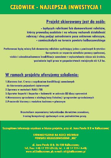 Stowarzyszenie Na Rzecz Rozwoju Powiatu Kolbuszowskiego NIL zaprasza do udziału