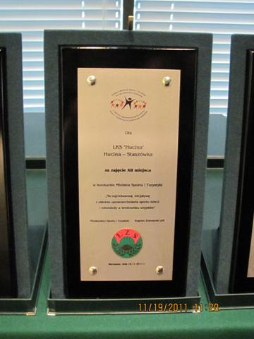 Plasując się na drugim miejscu Komisja Wojewódzka zgłosiła w/w imprezę zorganizowaną w Hucinie do oceny Komisji Krajowej, która ustaliła ranking od 1 do 32 miejsca. „Sportowe lato wśród dzieci młodzieży na wsi” zajęło w Finale ogólnopolskim XII miejsce. Ludowy Klub Sportowy Hucina w Hucinie Staszówce otrzymał nagrodę w postaci sprzętu sportowego. Wręczenie nagród odbyło się 19 listopada 2011 roku w Muzeum Sportu i Turystyki w Warszawie. Organizatorom,