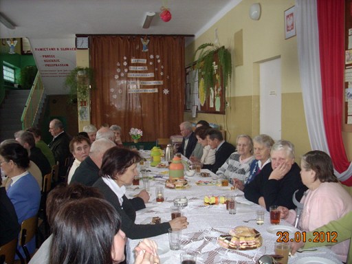Życzenia zacnym gościom w dniu ich święta złożyła również dyrektor szkoły Krystyna Piątkowska. Na uroczystość przybyli również: sołtys p. Stanisław Warunek oraz p. radna Danuta Dłużeń. Na zaproszonych gości czekał gorący obiad i słodki poczęstunek przygotowany przez rodziców.