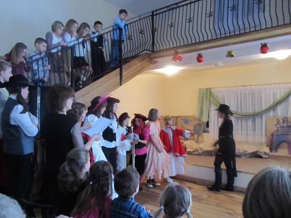 Najpierw wszyscy obejrzeli przedstawienie przygotowane przez uczniów szkolnego kółka teatralnego pt. „Kot w butach” wg Jana Brzechwy, następnie przedszkolaki uczyły się tańczyć pod kierunkiem pani prowadzącej zajęcia z rytmiki. Później do zabawy włączyły się wszystkie dzieci, dając pokaz swoich umiejętności tanecznych. Atrakcją wieczoru stały się odwiedziny Świętego Mikołaja, który rozdawał prezenty i rozweselał zarówno starszych jak i młodszych gości. Smaczny poczęstunek przygotowany i sponsorowany przez właścicieli Zacisza, Wandę i Zbigniewa Ofiarów, pozwalał nabrać sił do karnawałowych zmagań na parkiecie.