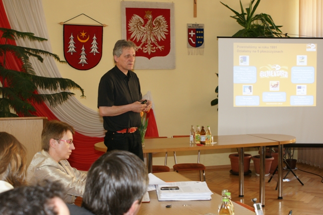 Podczas spotkania obecny był prezydent Fundacji "Elementarz" - Andrzej Jabłoński. Jego Fundacja prowadzi 13 szkół , ( od września 2012r. – 19), w tym 1 na terenie województwa podkarpackiego, szkołę w Golcach, gmina Jarocin, a także 78 przedszkoli. Prezydent przedstawił działalność Fundacji „Elementarz” instytucji edukacyjnej, która istnieje od 20 lat. Zajmujemy się prowadzeniem małych szkół liczących do 70 uczniów, głównie wiejskich. Przekazanie takiej szkoły nie musi się wiązać z jej likwidacją. Gwarantujemy jakość nauczania i uczniowie nic na tym nie tracą. Co innego z nauczycielami, bo ci pracują na normalnych zasadach wynikających z Kodeksu Pracy, a nie z Karty Nauczyciela - mówił A. Jabłoński.