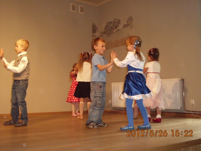 Dużą radością okazały się wspólne zabawy z rodzicami, wszystkie dzieci swobodnie prezentowały swoje umiejętności artystyczno – wokalne.