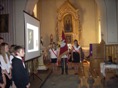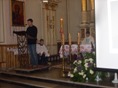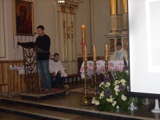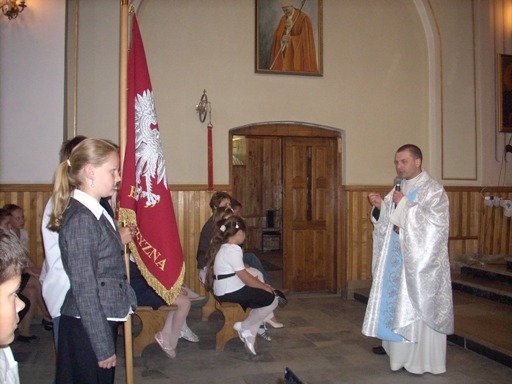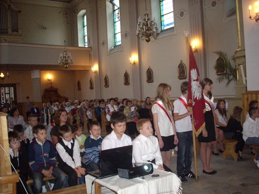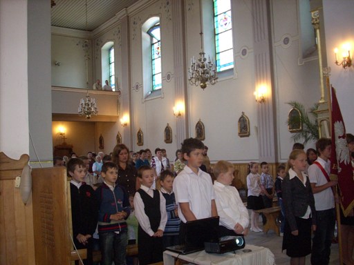 Przed Mszą uczestnicy spotkania wysłuchali montażu słowno - muzycznego , w którym uczniowie przedstawili życie i działalność Kardynała Stefana Wyszyńskiego . Ten dzień to również 31 rocznica śmierci Patrona.
