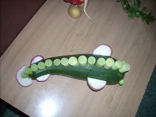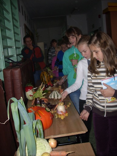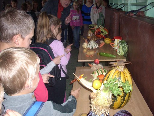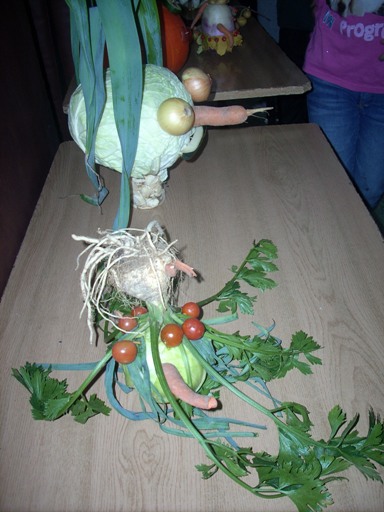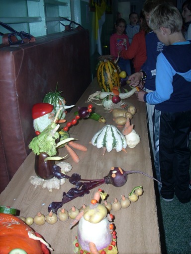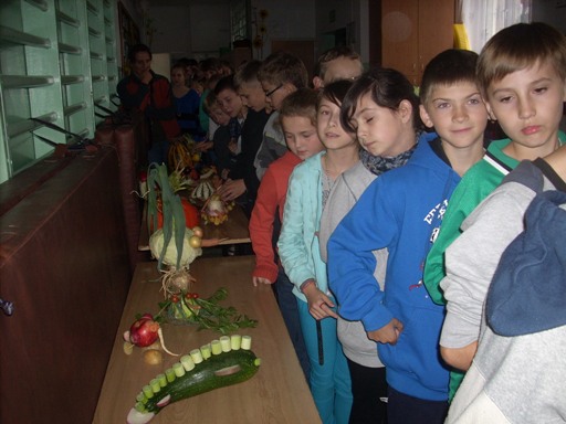 Przeróżne owocowo – warzywne „stworki”, wzbudzają podziw i zainteresowanie uczniów szkoły jak i ich rodziców.