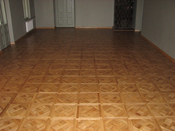 Konserwacja zabytkowej mozaiki parkietowej – zatrzymała procesy destrukcyjne i w pełni przywróciła jej właściwy stan techniczny i estetyczny, w tym pierwotnie zamierzony wygląd całości, w zharmonizowanych wnętrzach.