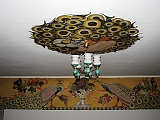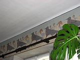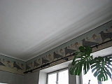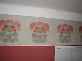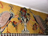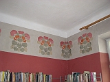Najciekawsze malowidło znajduje się w dawnej jadalni a zarazem największym pomieszczeniu we dworze .Ściany tej sali ozdabiają duże pawie, stąd nazwa „Pod Pawiami”.W pomieszczeniach biblioteki znajdują się dwie sale w których znajdują się zabytkowe polichromie. Jest to sala pod makami i pod wronami. Obecnie dwór ten jest siedzibą Gminnego Ośrodka Kultury i Biblioteki .Obok dworu stoi frontem do niego murowana i parterowa oficyna dworska, wzniesiona na początku XIX wieku. Obecnie mieści się w niej Komisariat Policji.W obrębie dawnego założenia parkowo – dworskiego zwraca jeszcze uwagę pseudogotycki murowany i piętrowy spichlerz dworski z końca XIX wieku.