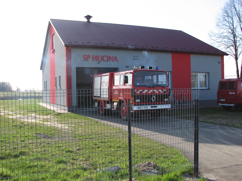 OSP HUCINA - jednostka Typu S-1 posiada jeden boks garażowy samochód gaśniczy RENAULT S130 GBA 1.6/8 , agregat prądotwórczy trójfazowy 7,5 KW z masztem oświetleniowym motopompę M - 800, P05, komplet ubrań ochronnych i uzbrojenie osobiste, armaturę do dostarczania i podawania wody, radiostację samochodową i syrenę alarmową.