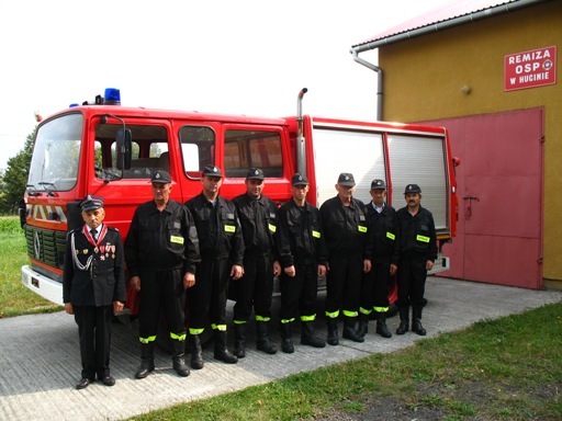 Ochotnicza Straż Pożarna w Hucinie, powstała w 1957r. Założycielem jej byli: Władysław Maciąg, Antoni Skiba, Józef Krupa, Franciszek Zielińska. Pierwszym wyposażeniem była sikawka ręczną przechowywana w drewnianej szopie wzniesionej na prywatnej posesji Józefa Kija. Z biegiem czasu pozyskano motopompę i przyszła kolej na budowę obiektu remizy. Z pomocą przyszło kierownictwo poligonu wojskowego w lasach Przyłęku. Strażakom pozwolono prowadzić prace rozbiórkowe obiektów poligonu, a materiał przetransportowano na plac budowy remizy. Był to wówczas pierwszy tak okazały obiekt strażacki na terenie gminy, a komenda Straży w dowód uznania przydzieliła motopompę M-800.