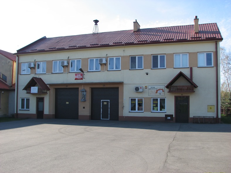 strażnica- budynek piętrowy murowany, posiadający 2 garaże, wyposażony w instalację elektryczną, wod.-kan., gazową i centralnego ogrzewania;
