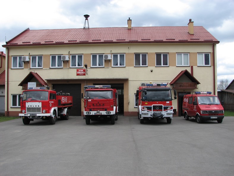 samochody pożarnicze- marki „Star” 25 GMB 2/8, „Jelcz” 004 GCBA 6/32 oraz samochód operacyjno-terenowy „Uaz”-469 B;